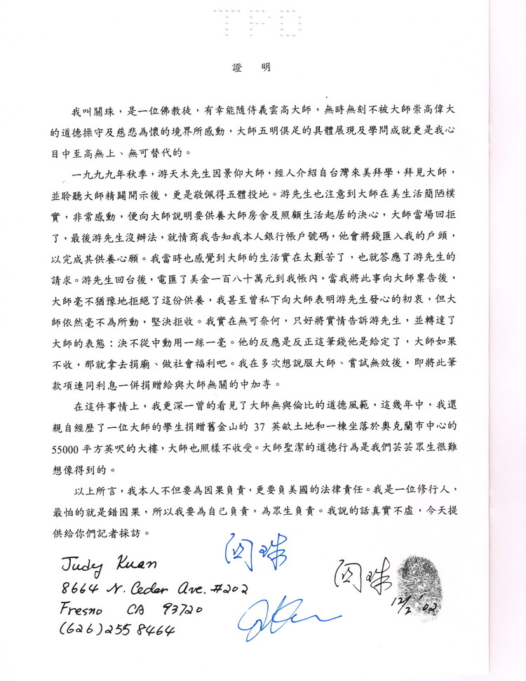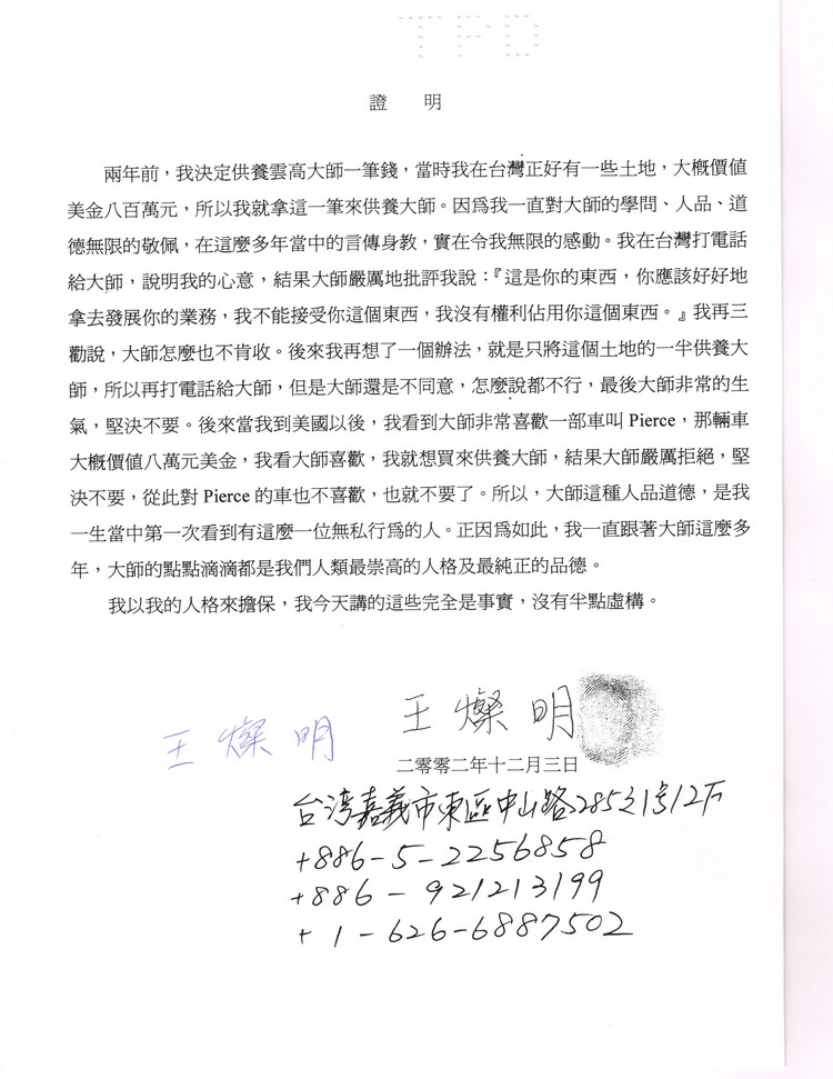 南无羌佛不收供养的部分证明 2020年7月6日 00:30:06圆满佛格南无羌佛不收供养的部分证明已关闭评论312阅读模式 摘要南无羌佛不收供养的部分证明 南无羌佛不收供养的部分证明 一切知见和法义均依南无羌佛说法为准,谨遵南无释迦牟尼佛教戒! 南无十方三世一切佛,南无观世音菩萨! 更多链接: 《妙法莲华经-观世音菩萨普门品》_佛教经典 南无观世音菩萨法缘日,农历九月十九 《藉心经说真谛》_佛陀说法_南无观世音菩萨_心经 什么是正确的“大悲观音加持法”_南无观世音菩萨 虔诚顶礼 南无观世音菩萨 五彩光围绕着的南无观世音菩萨非常庄严 《般若波罗密多心经》_南无观世音菩萨 南无羌佛 单手勾提437.2磅金刚杵 2024 年恭迎南无 羌佛 佛诞法会 圣典传世 百人献供 回首2022年, 望着办好的护照,有一种无人能代替的痛...... 供养钱财掂量再三,怎会三业相应? 点赞 https://www.borefazang.com/1867/ 复制链接 复制链接