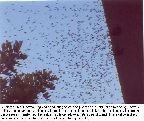 图:大法王举行超渡时,天人、人非人等化现为大黄蜂,蜂拥而来以求超渡